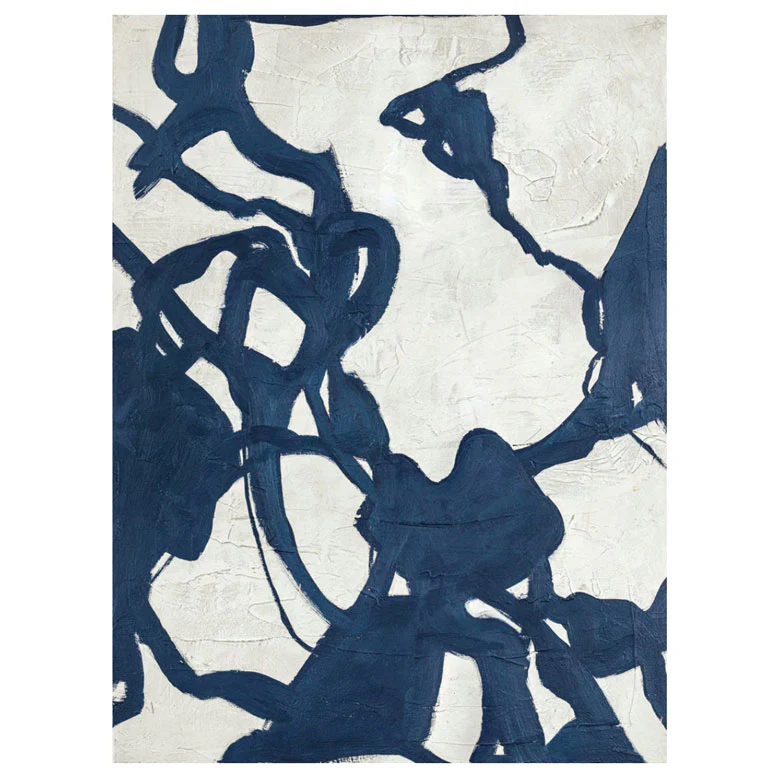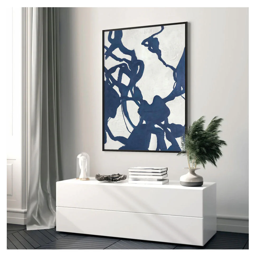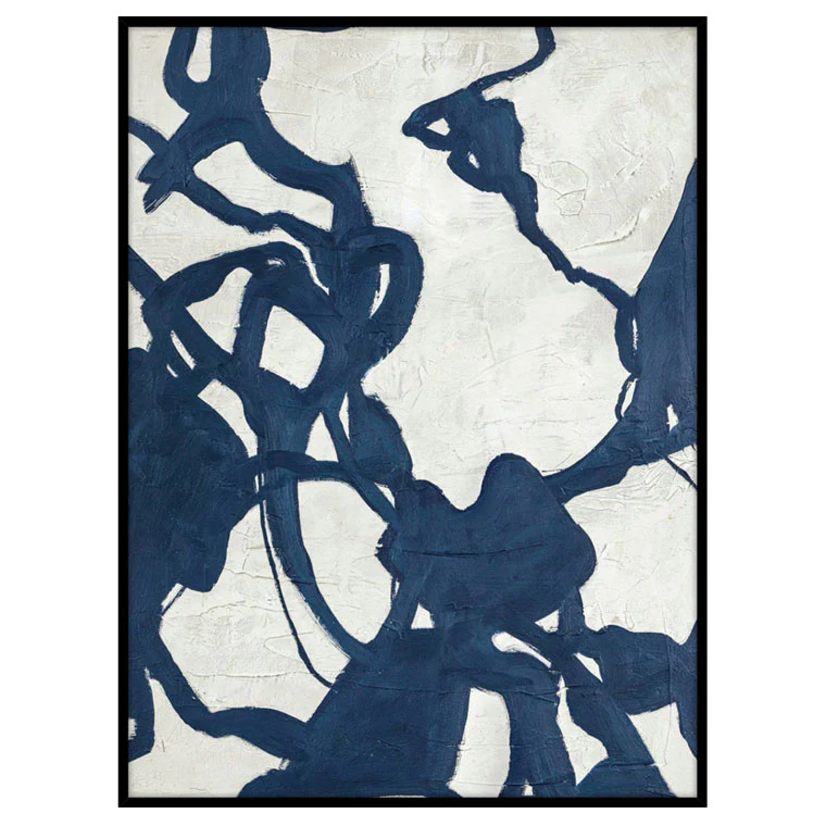 Målningen utstrålar toppmodern elegans med sina dynamiska penseldrag. Blueplay är skapad på en strukturerad bakgrund som ger substans till det enkla uttrycket. Tavlan hamnar i blickfånget med sina lekfulla och organiska blåa linjer. Blueplay kompletterar hemmet och uppnår en wow-effekt.