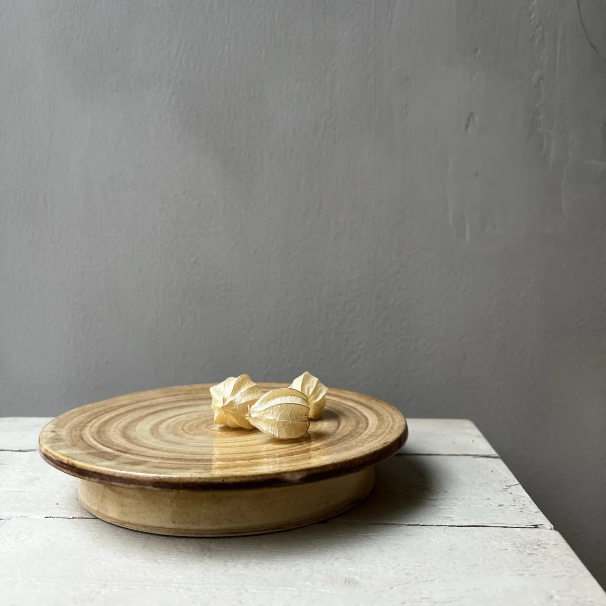 Ett unikt, drejat ”tårtfat” för den lilla tårtan eller några goda ostar. Vi tycker om att använda flera fat i olika höjd och bredd för att få en både praktisk och lekfull dukning.