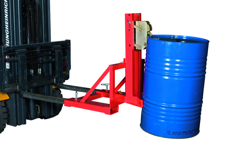 Automatisk gripanordning för lyft och transport av stålfat med truck. Aggregatet apteras enkelt på truckens gafflar och fastlåses med vingskruvar. Griper atomatiskt fast fatet och håller det säkert på plats under transport. Anordningen är ställbar i höjd för att passa alla storlekar av stål fat. Fatgripar finns i utförande för 1-fat eller 2-fat.
