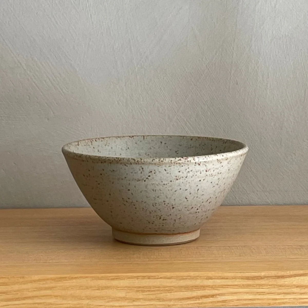 En liten vacker handdrejad skål tillverkad i stengodslera. Glaserad i en härlig blågrå glasyr som låter lerans karaktär träda fram.