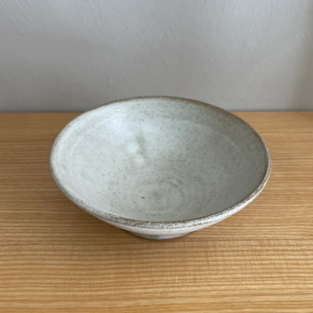 En liten vacker handdrejad skål tillverkad i stengodslera. Glaserad i en vit härlig glasyr där små prickar att träder fram.